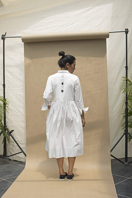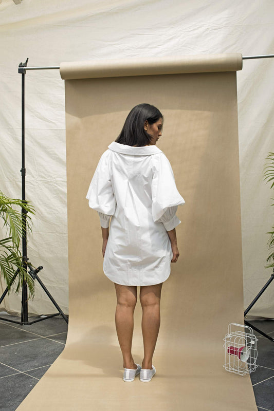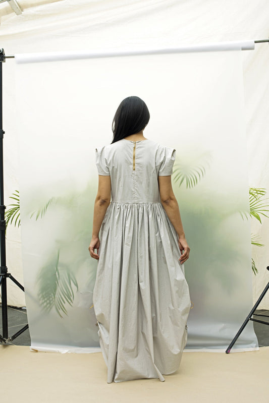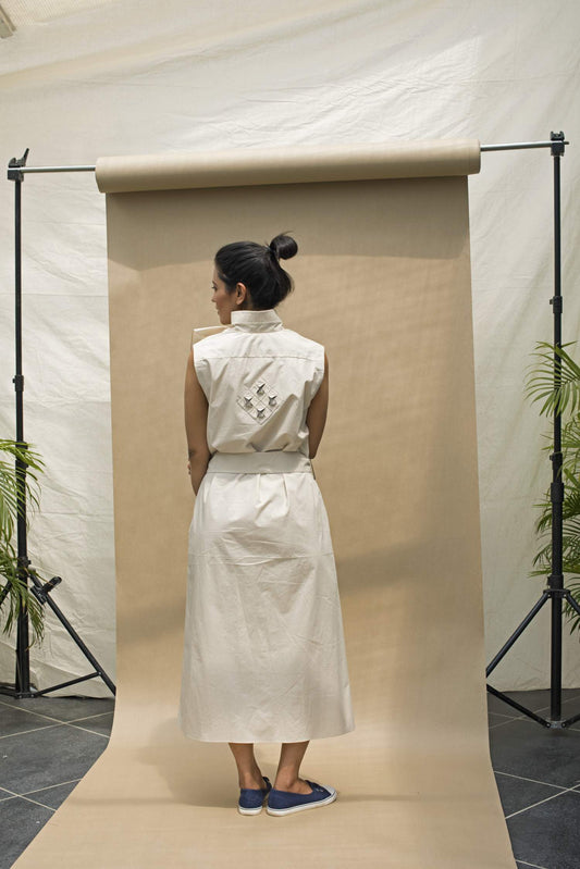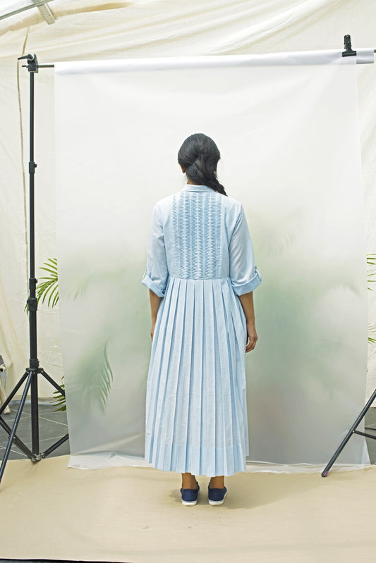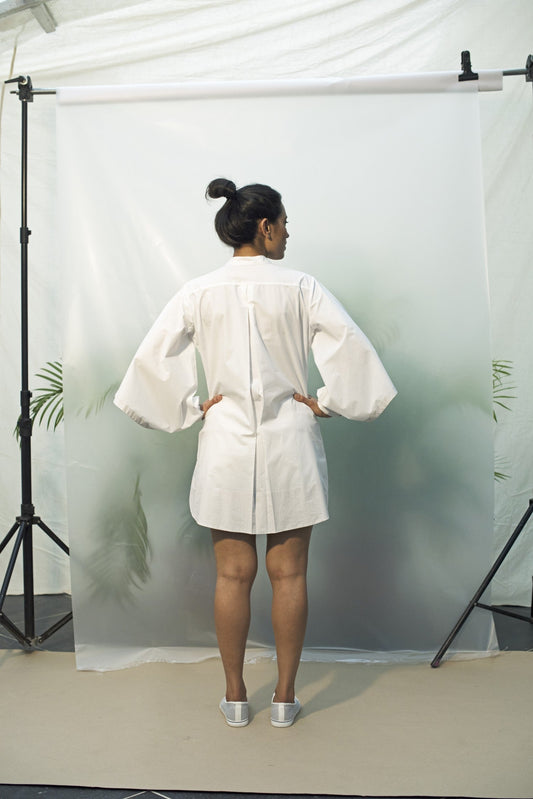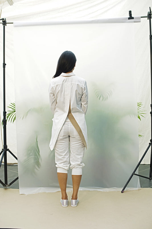 Loosely translated from Japanese to mean, “sunshine filtering through the leaves of a tree”, Komorebi evokes azure skies and crisp, cool mornings. A nod to renowned architect Ludwig Mies van der Rohe and his motto ‘Less is More’, Komorebi adopts construction and design aesthetics from Japanese origami —minimalistic and functional. Handcrafted and sewn with knife pleats and hand embroidered details, each piece takes on a life of its very own. As sunshine dances through the leaves, Komorebi catches the light with quiet, timeless elegance.