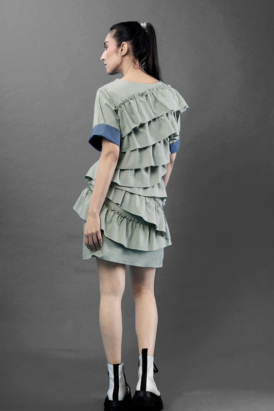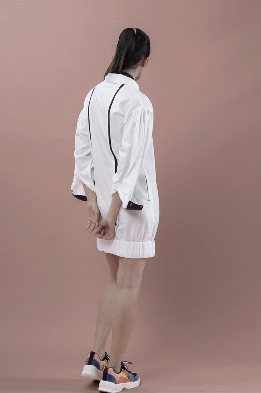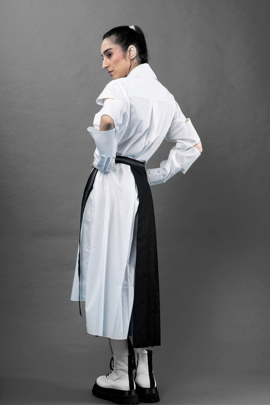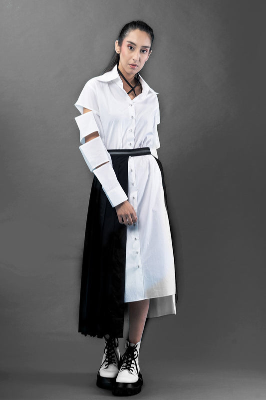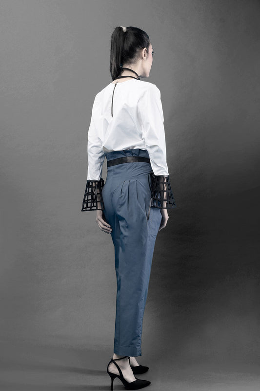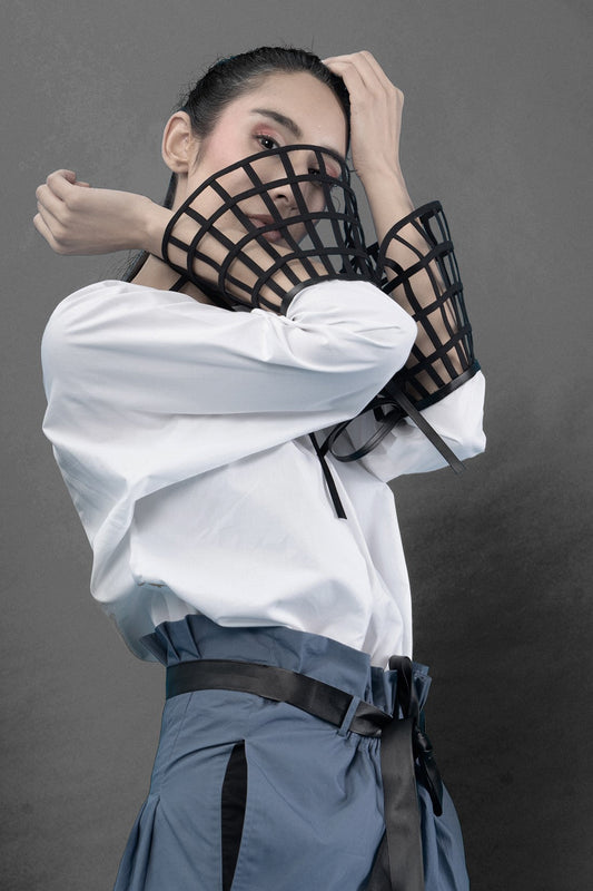 When the rest of the world had turned in, we were looking out. Using fashion to fill the void, Spaced Out is an introspective play ful collection of elevated essentials. Soothing to the mind and soul, the muted pastel palette evokes quiet strength and determination. Deconstructed sleeves, fabric cutouts, and detachable collar frames — the only way we rise is to star t rearranging from within.