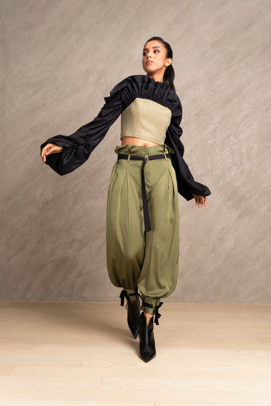Nonchalant yet dangerous, BOWTIE showcases feminine energy in the way it properly deserves. The understated monochromatic palette gives way to sharp elegant tailoring reminiscent of 1920’s suited sophistication. Think: prohibition slicked back ponytails and thigh high boots. Fierce and unapol- ogetic, there’s more than pleating up these sleeves.