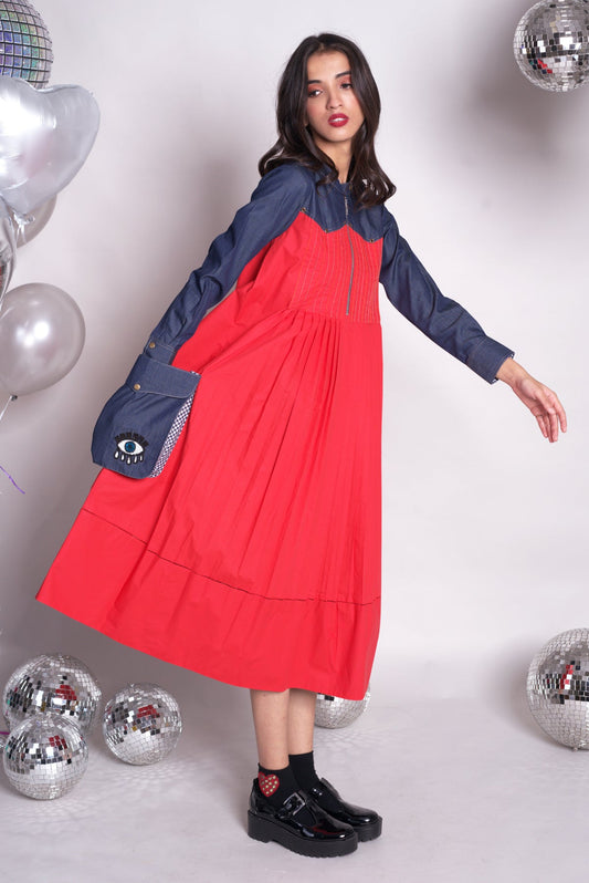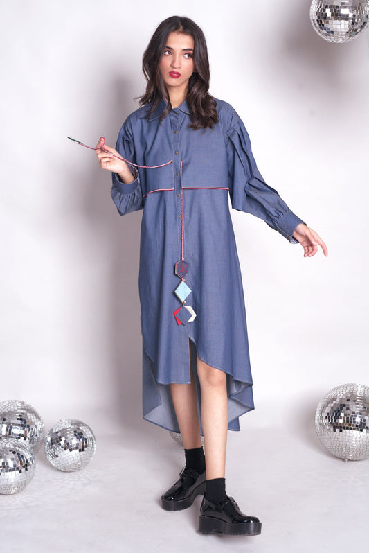 Bold, happy and bright — Confetti sparks joy! Our structured signature pieces take on a bright palette, showered in colourful subtleties. We want you to feel creative and energized in this collection. Soft denim and contrasting bright smooth poplin fabric is highlighted with playful hints of handsewn geometric detailing. You deserve to have some fun — clad yourself in Confetti.