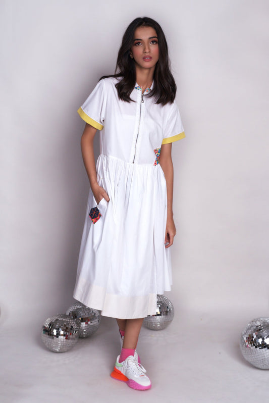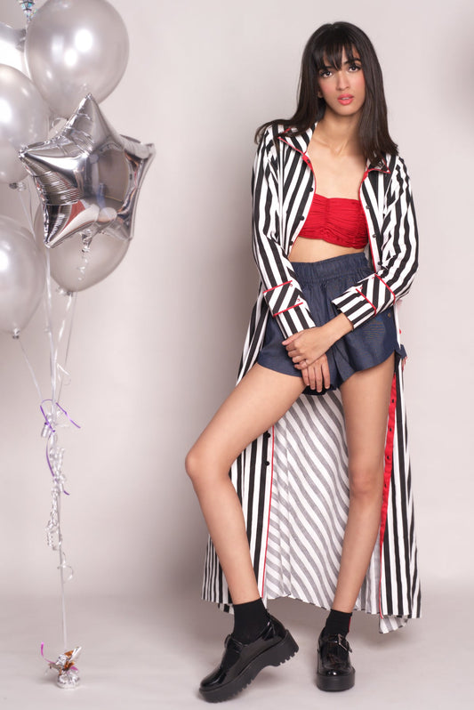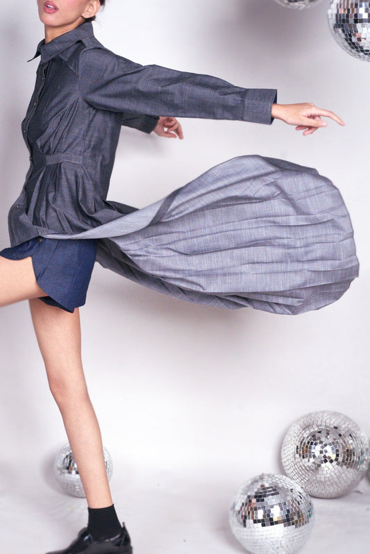 Bold, happy and bright — Confetti sparks joy! Our structured signature pieces take on a bright palette, showered in colourful subtleties. We want you to feel creative and energized in this collection. Soft denim and contrasting bright smooth poplin fabric is highlighted with playful hints of handsewn geometric detailing. You deserve to have some fun — clad yourself in Confetti.