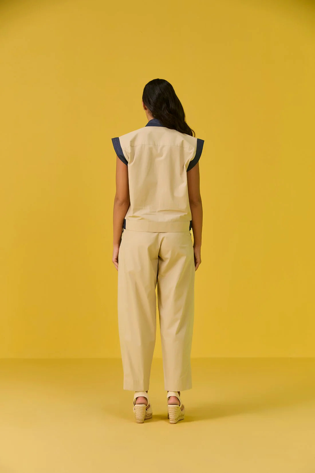 These above-ankle length trousers offer a relaxed fit, making a statement while keeping things effortlessly cool. They feature an eye-catching bottle cap and rivet detailing at the hem, adding a bold, edgy finish to a sleek silhouette. Pair these trousers with our Bean top to complete your look.