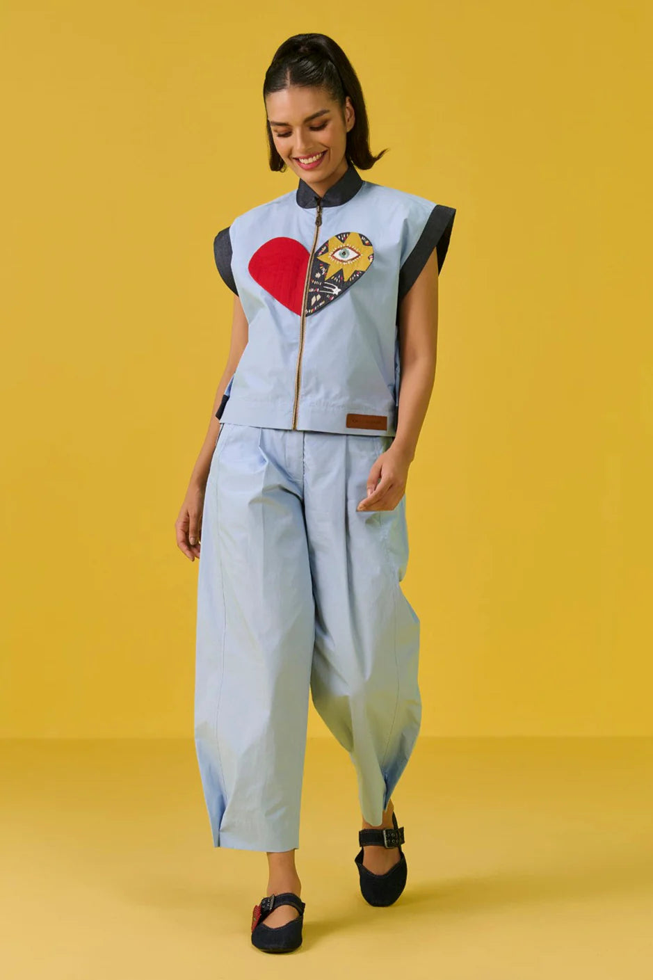These above-ankle length trousers offer a relaxed fit, making a statement while keeping things effortlessly cool. They feature an eye-catching bottle cap and rivet detailing at the hem, adding a bold, edgy finish to a sleek silhouette. Pair these trousers with our Bean top to complete your look.