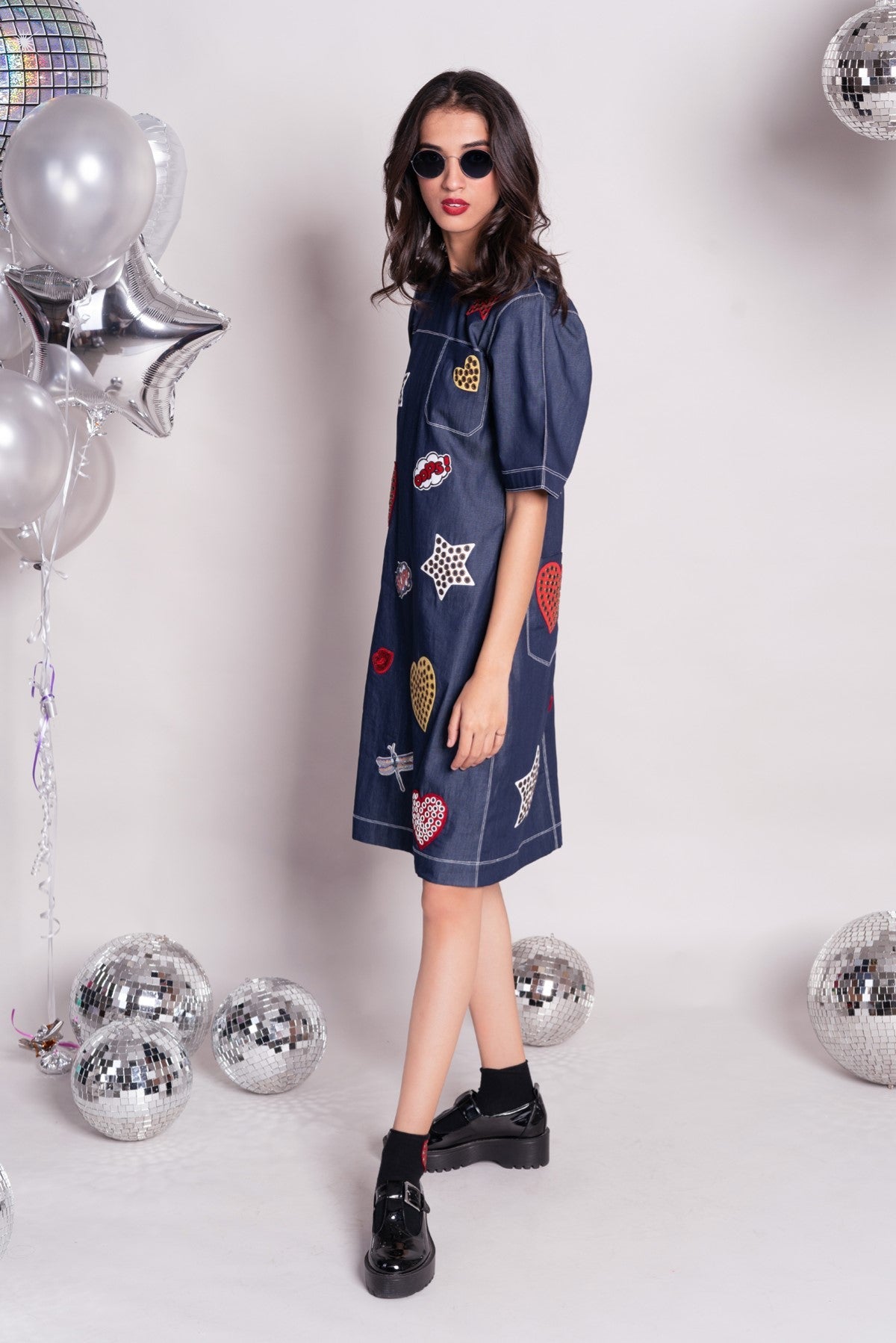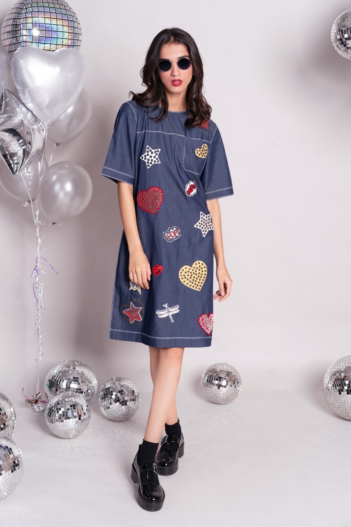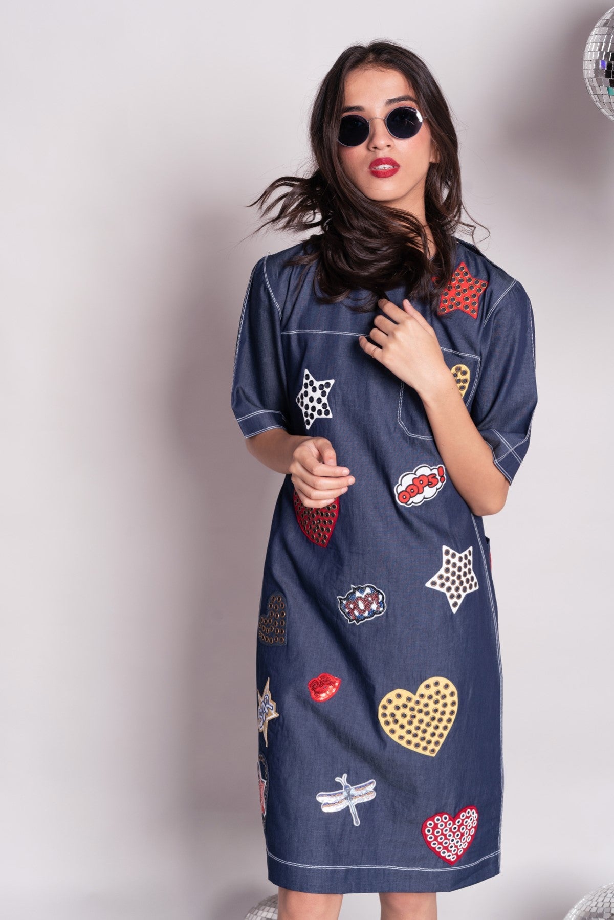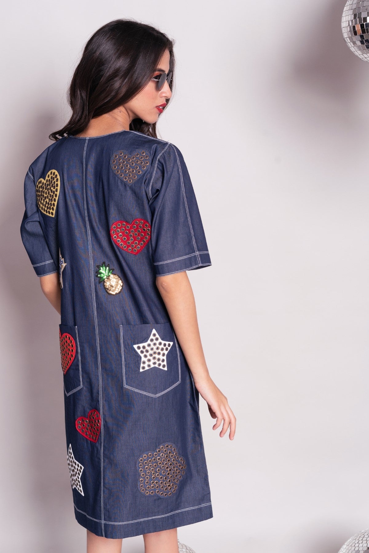 - Loose fit denim shift dress