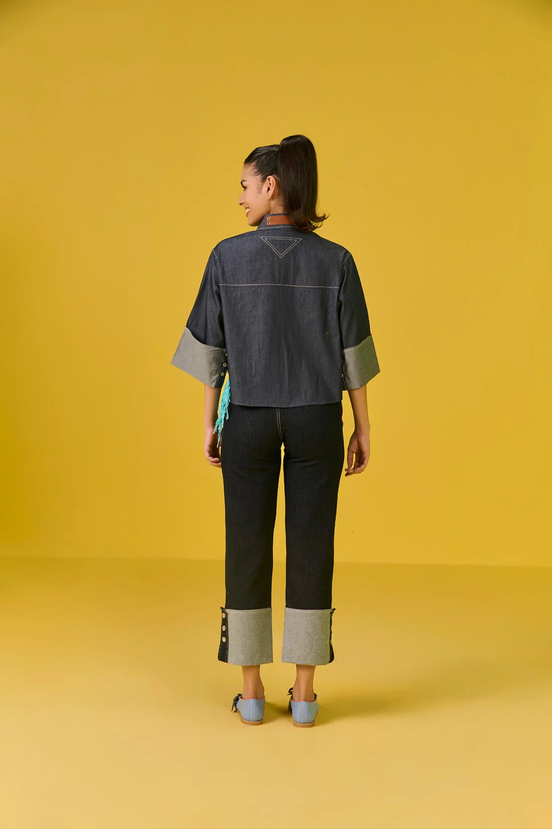 Tired of the same old? Our cropped jeans are here to shake things up with their delightful bottom hem slits and intricate detailing. These aren’t just jeans; they’re a conversation starter, a subtle swagger, and the perfect excuse to show off those killer shoes. Pair this with our Riff shirt to elevate your look.