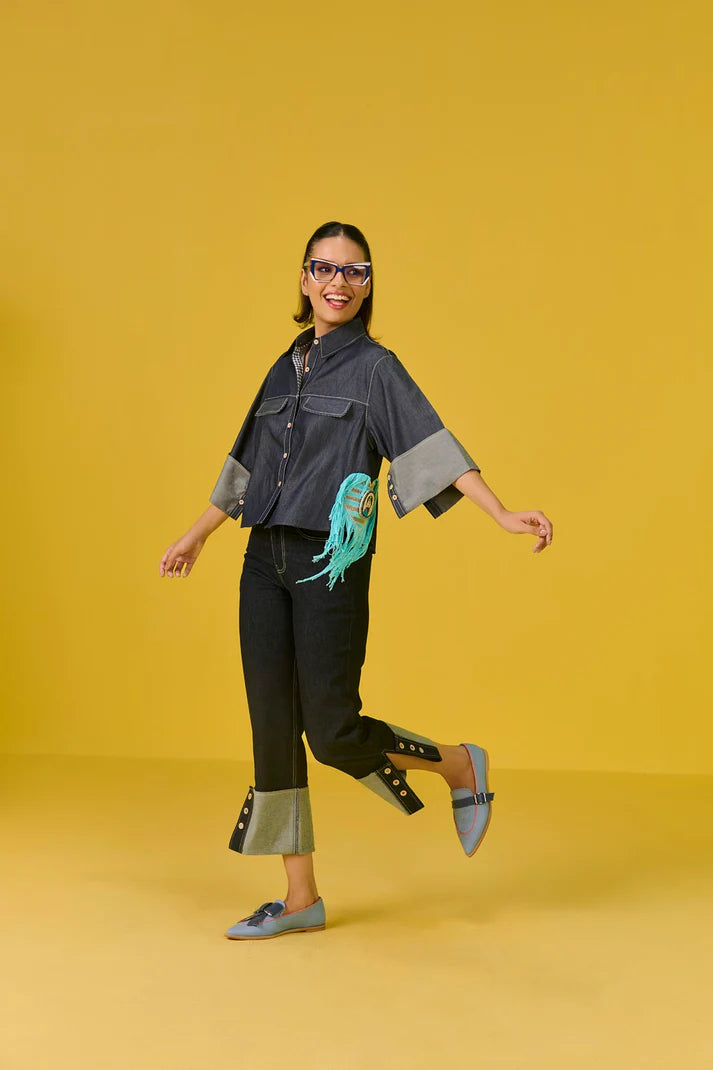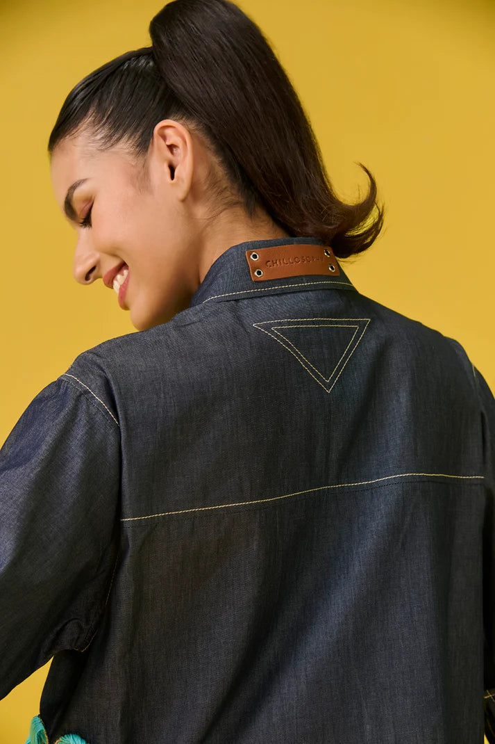 Meet your new favourite aww-some shirt! Made in soft, flowy denim, we ditched those stuffy cuffs for playful slits and buttons. But the real heart-stealer? A charming, hand-embroidered heart on one side seam, complete with adorable dangling strands that dance with every move. It’s quirky, it’s cute!