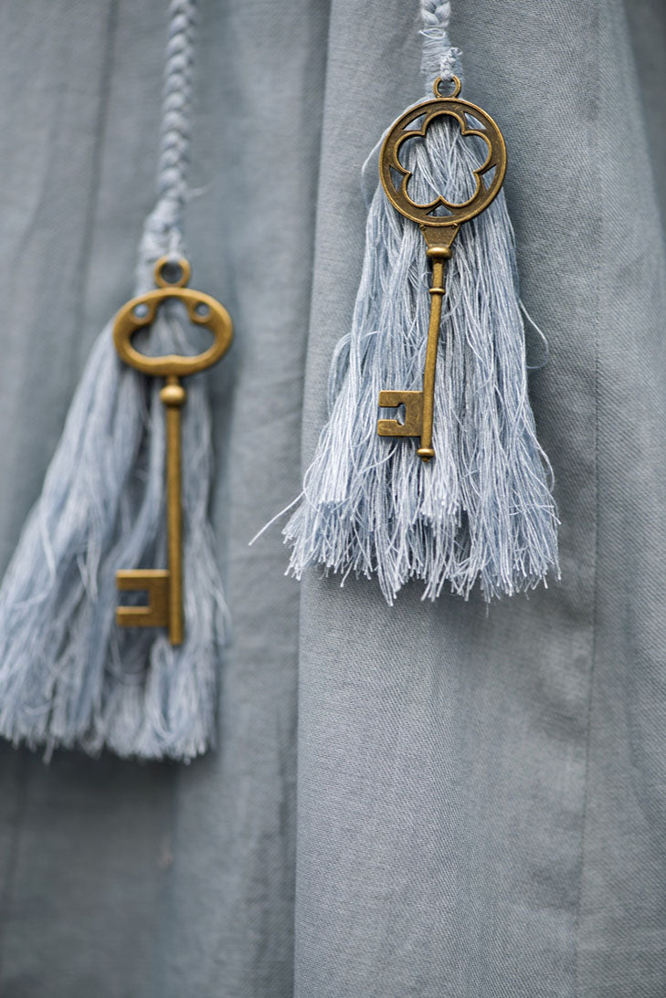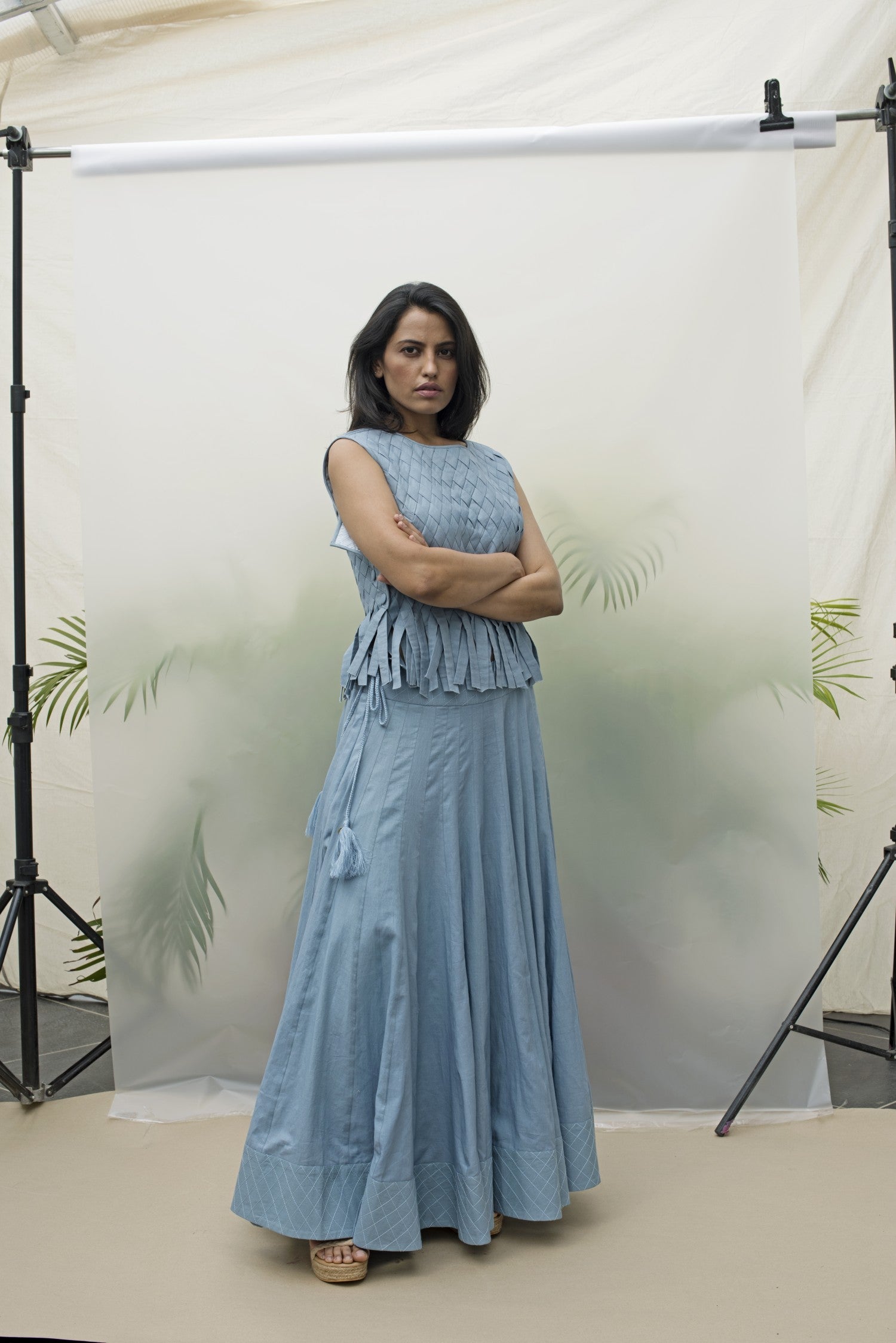 Fabric manipulation with handwoven fabric top with matching long skirt and charm detail on the side