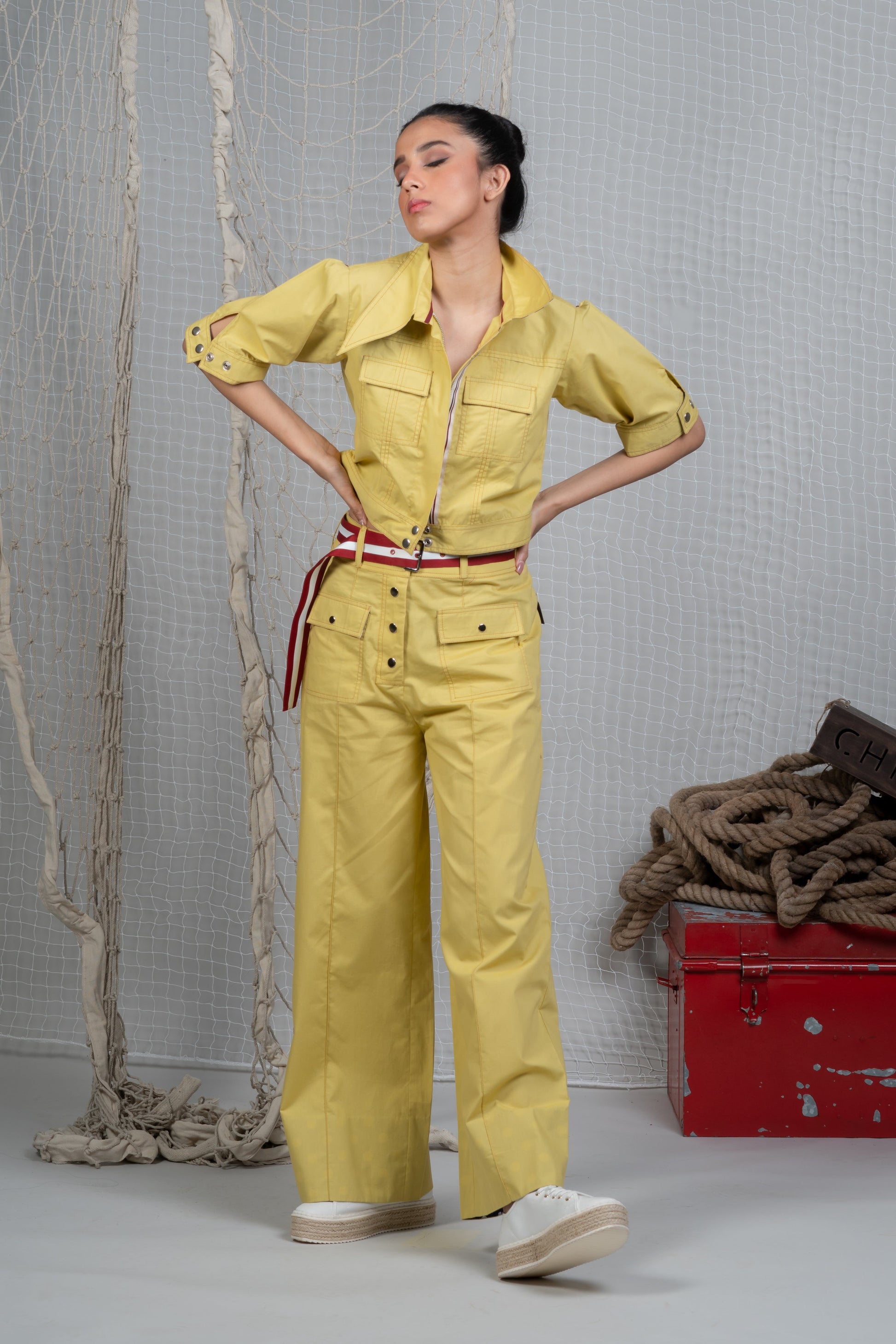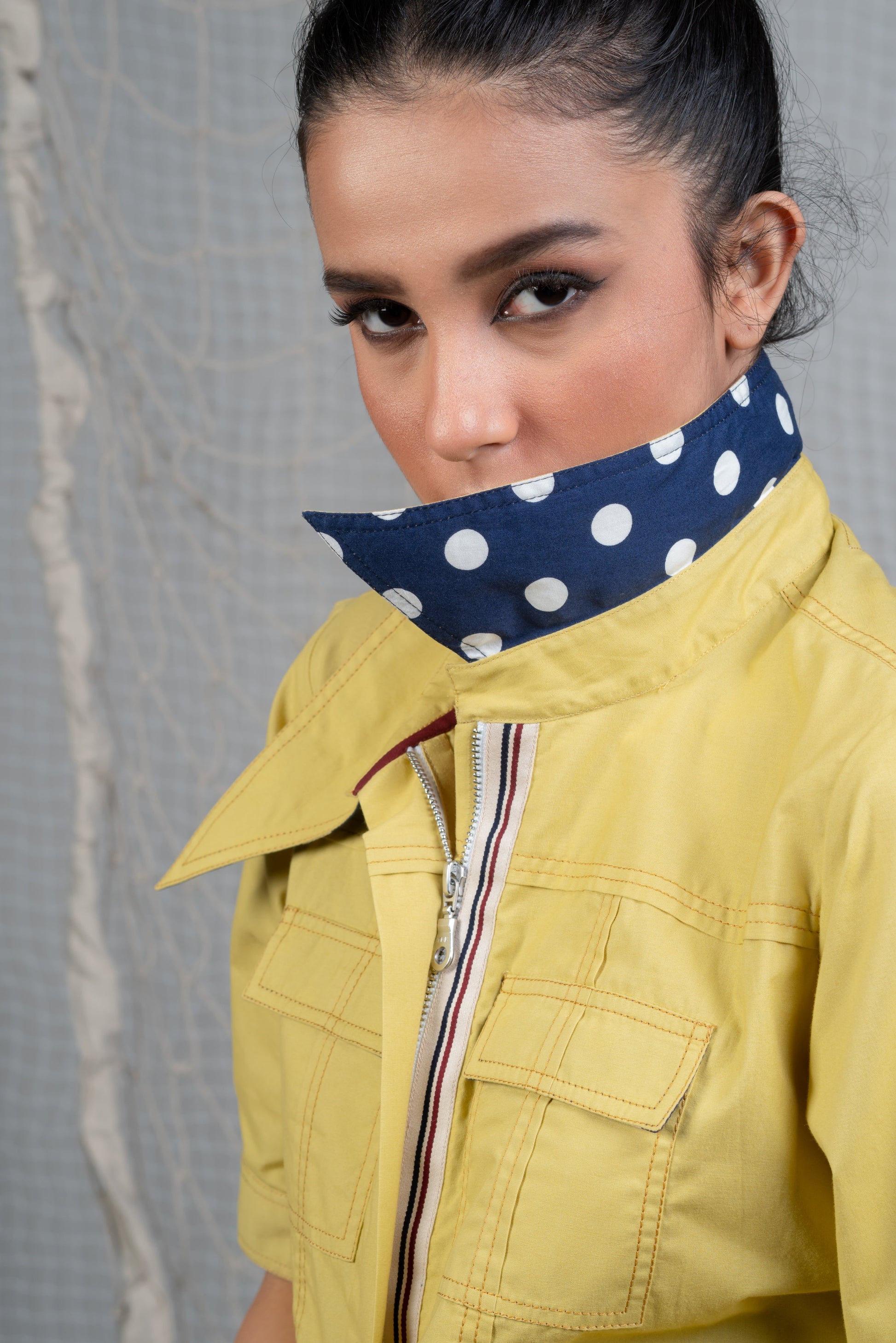 Gabardine style short Shirt, well tailored yet exceptionally easy to wear, will add a subtle utilitarian edge to daywear options with pocket & asymmetrical collar detailing.