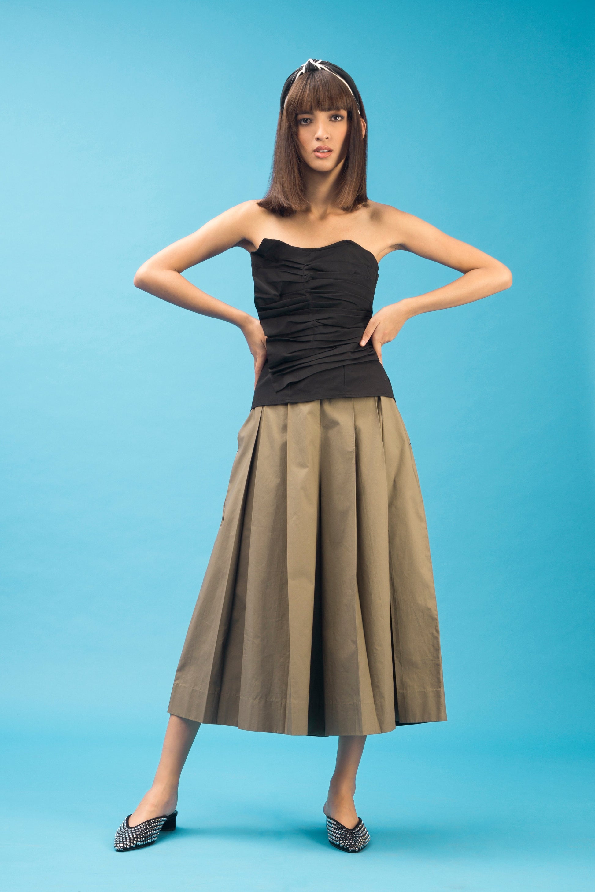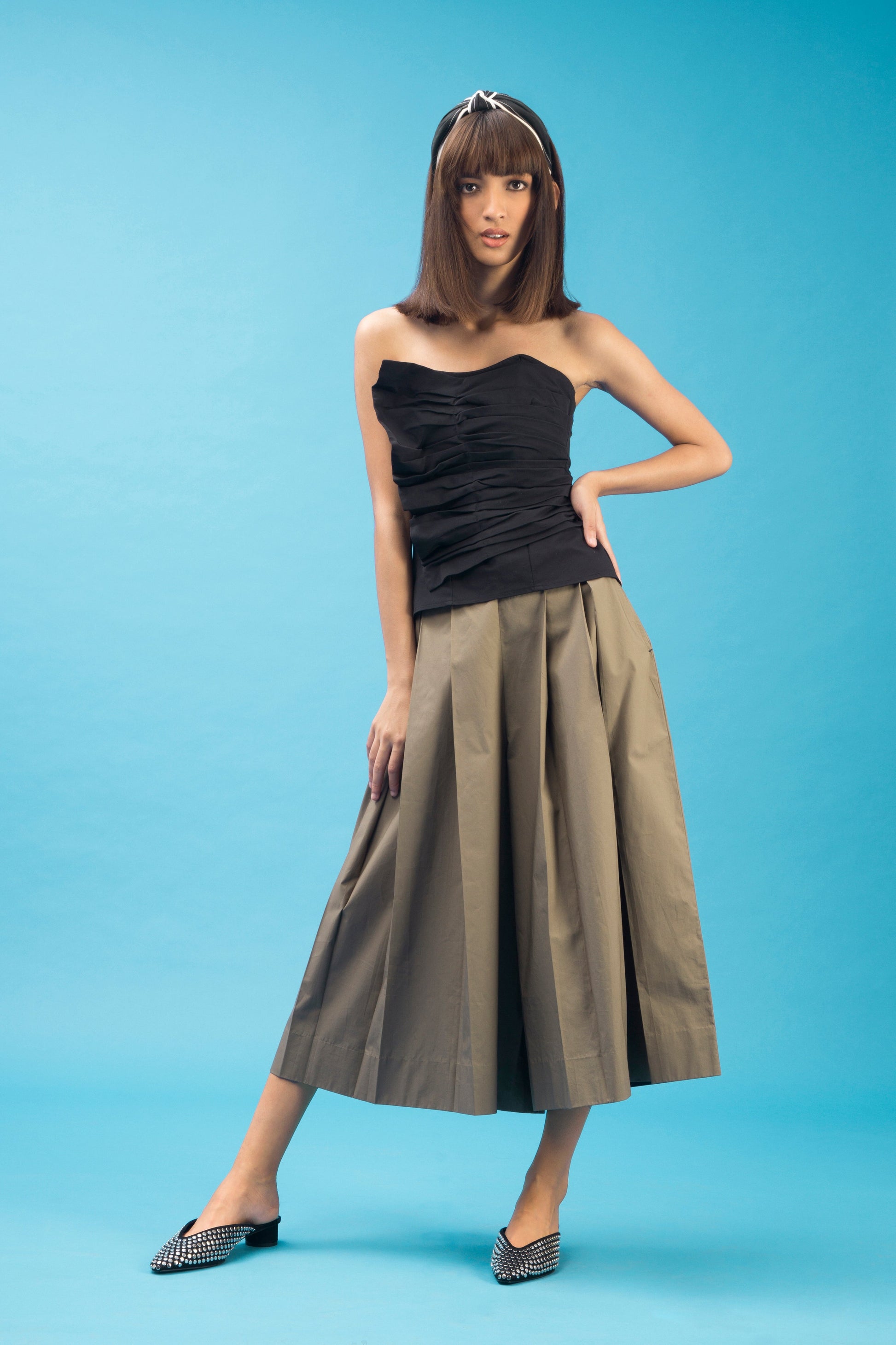 CA bustier top with fabric manipulation on the front and tail open details at the back.