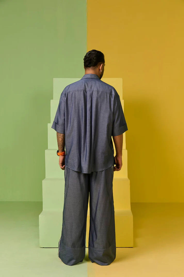These trousers are cut wide and clean with a dramatic hem. Contrast lace along the side seams adds a tonal break. Contrast colour facing on the hemline adds character to this super flowy outfit. Coordinate your look with our Groovio shirt to amp up your style quotient.